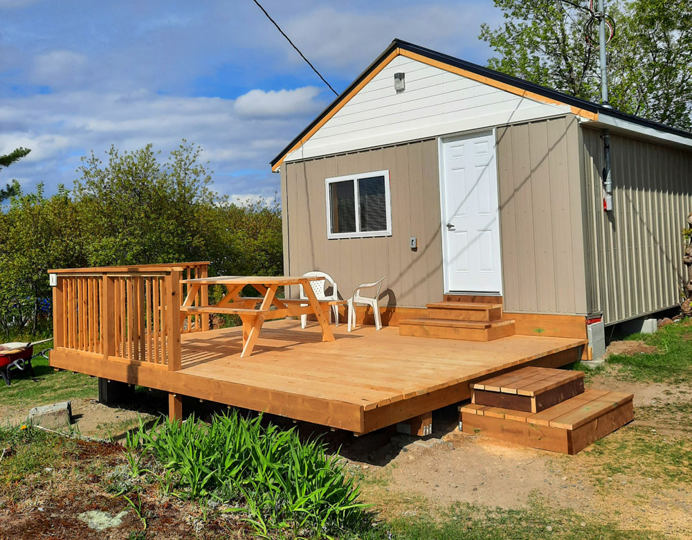Each cottage has comfortable furnishings, electric heat, 3 or 4 piece baths, and decks. The kitchens are fully equipped with electric stoves, refrigerators, microwaves and utensils. BBQs are supplied throughout the property. We supply the bed linens but request you bring your own towels, tea towels and personal soaps and shampoos. Our guests are welcome to use the screened-in gazebo for meals, playing games and socializing. Enjoy the sauna, campfire site and the central fishing cleaning facility.