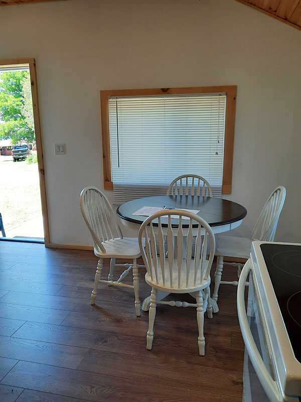 Cabin 2 is perfect for 2 fishing buddies or a couple with 2 double beds. Cabin 3 has one double bed. Both have a 4-piece bath, fully equipped kitchen and front porch. These 2 cabins are older and the price can't be beat. Some guests will rent a larger cabin and one of these more rustic cabins for an extra sleep camp.