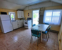 These 2 cozy one bedroom cabins look directly on the water. They are perfect for couples or two fishing buddies, with one double bed and a futon couch that folds out to a double bed. Fully equipped kitchens,4-piece baths, sitting areas and porches. We supply the bedding but request you bring your own towels/tea towels, personal soaps and shampoos.
