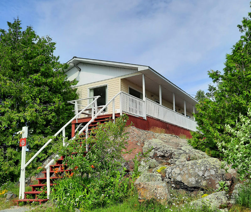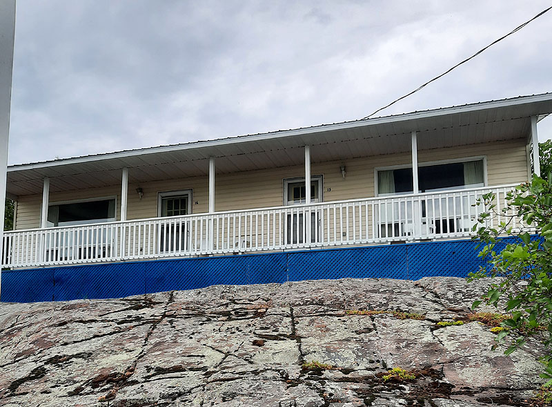 This duplex is located high on a rock with a spectacular western view. You can see your boat at the dock from the private deck or sit under the covered porch. Both cottages have fully equipped kitchens, spacious living rooms, 4 - piece baths and 2 bedrooms. Cabin 16 has 2 twins in each bedroom and Cabin 15 has a double and 2 twins. Both have pullout couches in the living rooms.